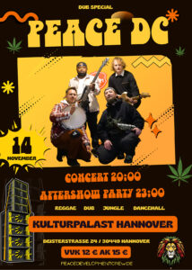 Die hannoversche Reggae-Band Peace Development Crew spielt ein Dub Special von Roots Reggae über Rub A Dub bishin zu modernen Dancehall und Afrobeats.